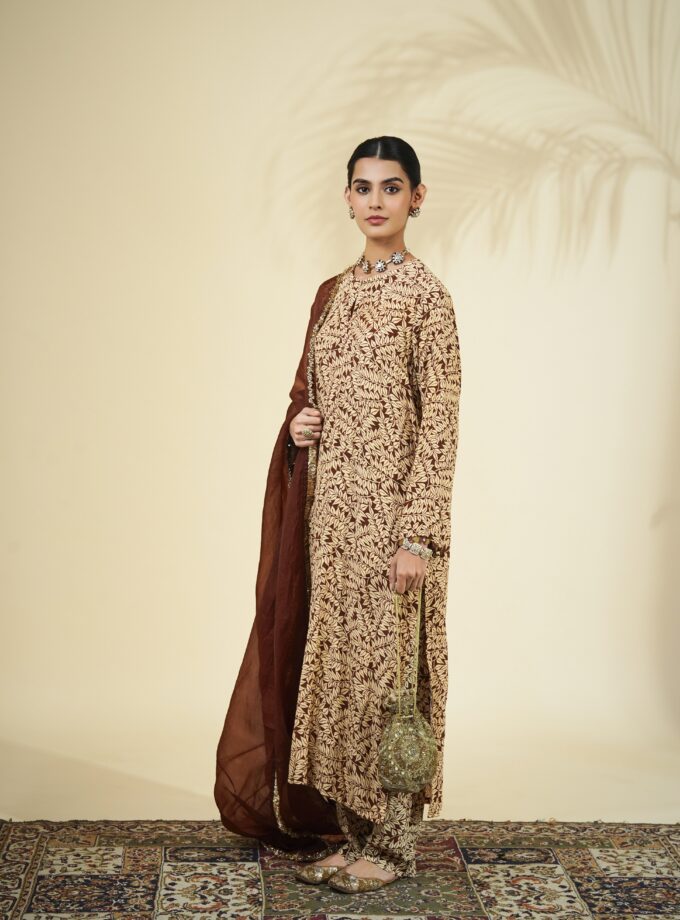 Brown fire print kurta set