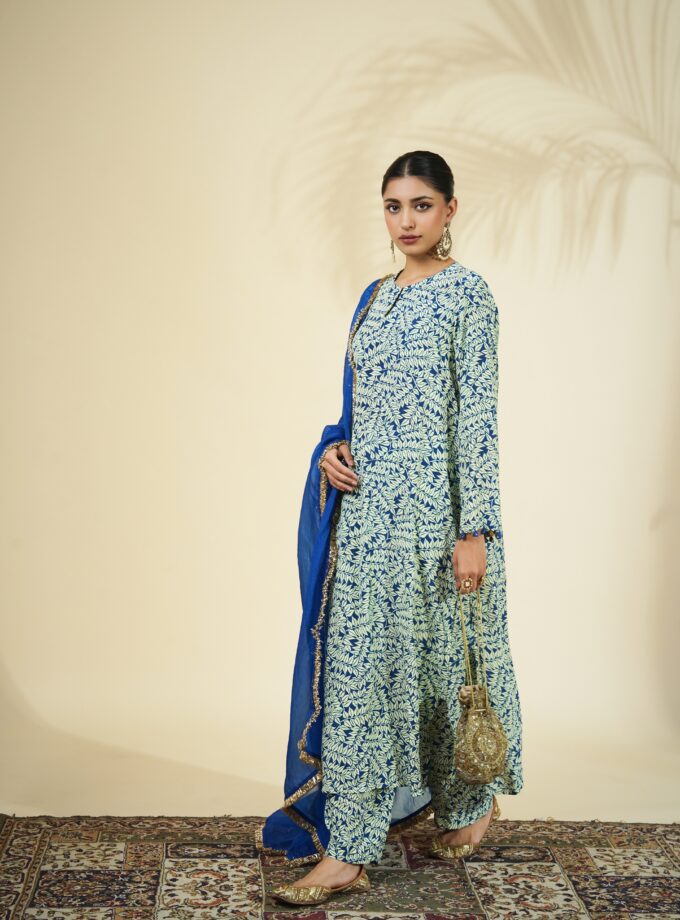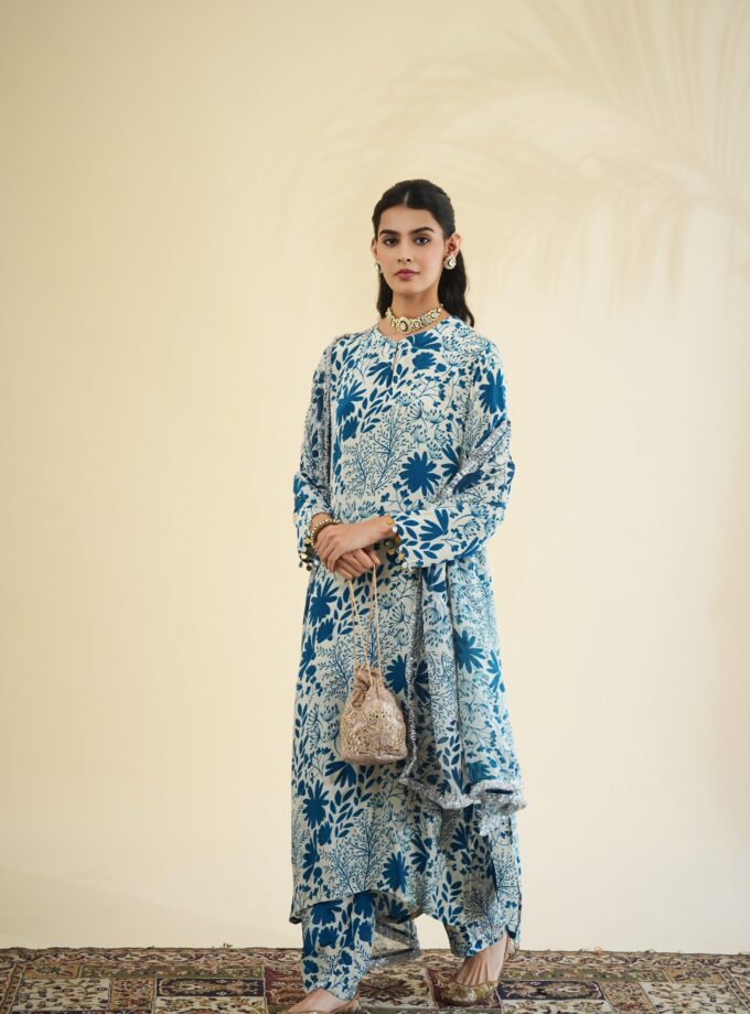 Blue fire print kurta set