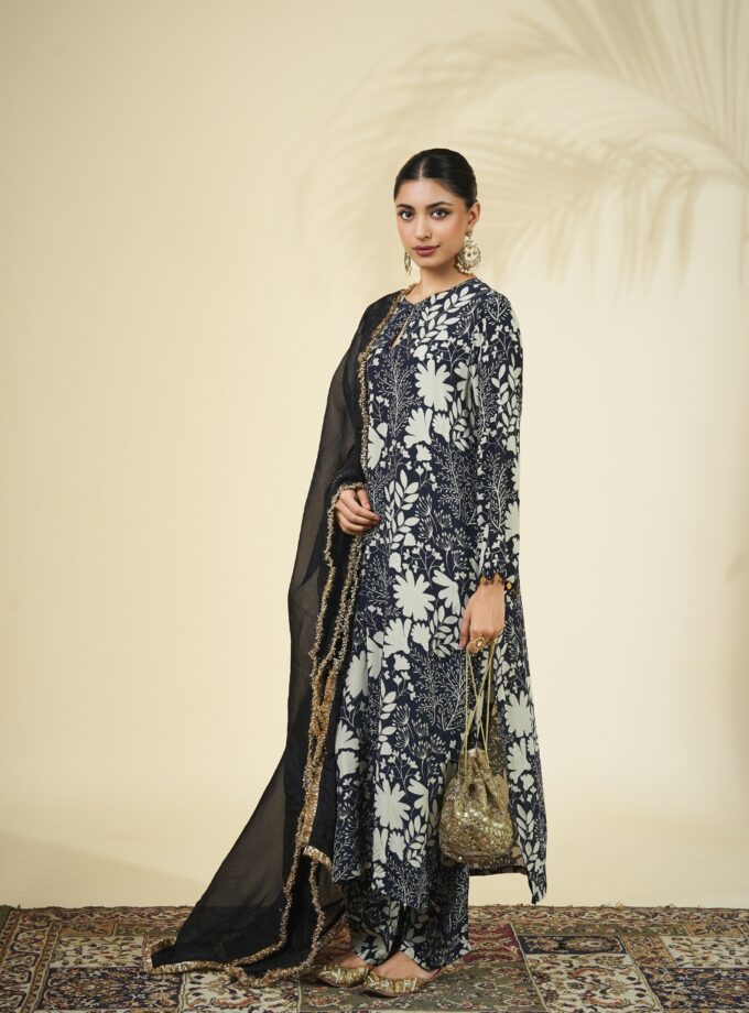 Black & sand garden print kurta set