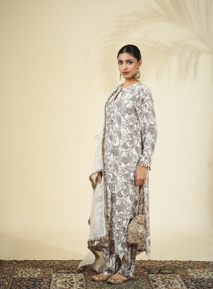 Coconut & brown paisley print kurta set
