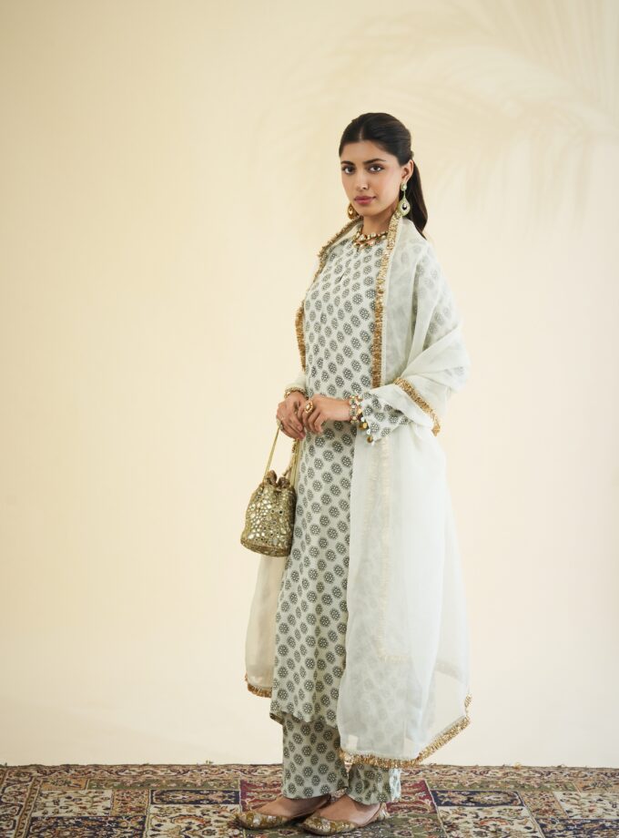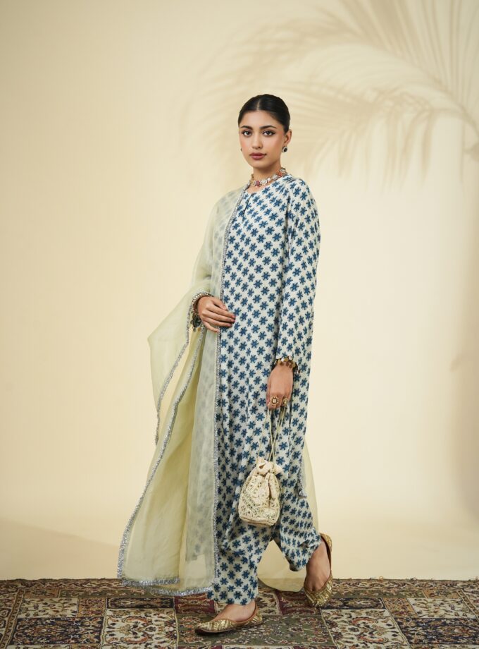 Sand & teal butti print kurta set