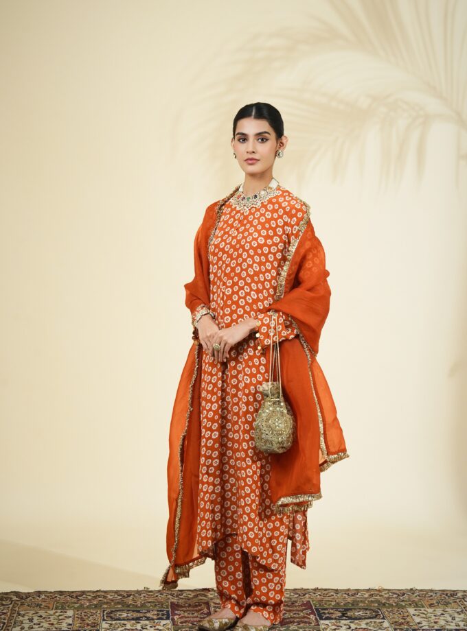 Toasted orange & sand butti print kurta set