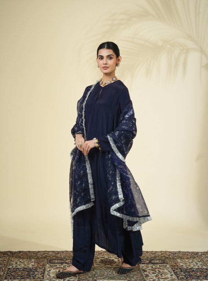 Solid dark blue kurta set