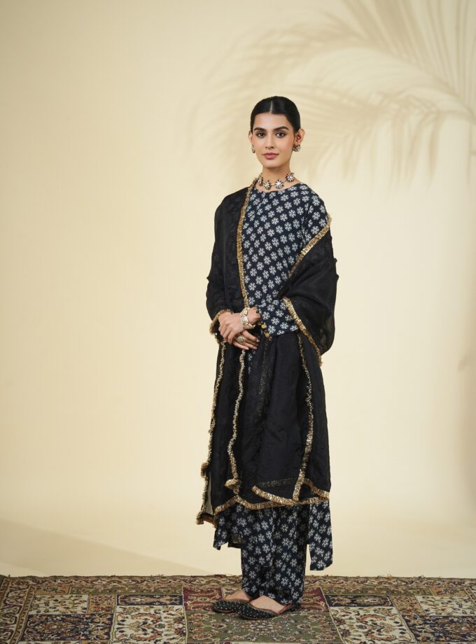 Black & sand butti print kurta set