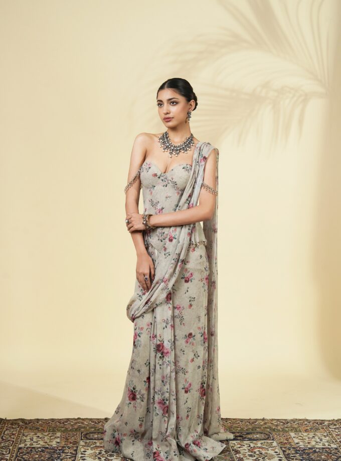 Vintage rose print corset sari set