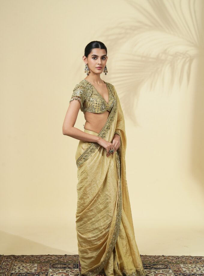 Gold tissue classic sari set